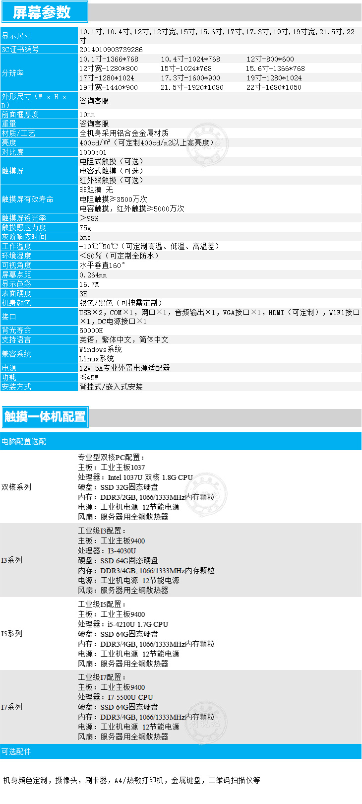 6、內(nèi)置電腦,采用主流配置,詳情請(qǐng)閱清單或咨詢。