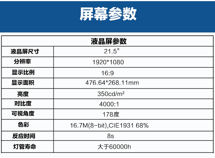 液晶屏尺寸 21.5寸TFT真彩液晶屏
