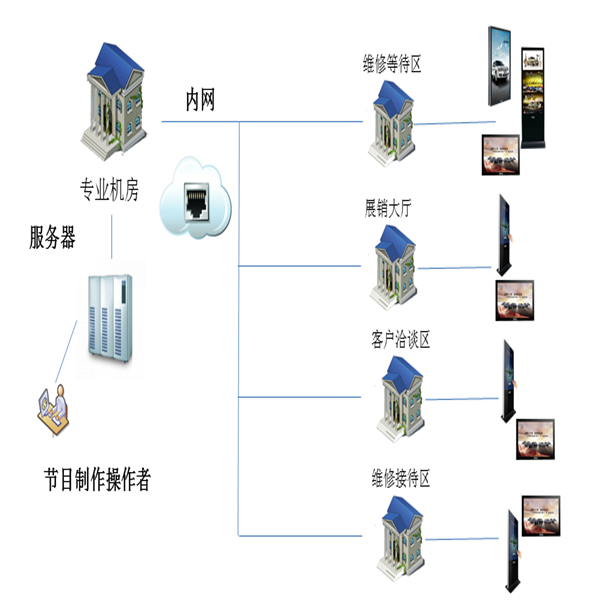 目前4S店基本都是通過產品宣傳折頁、易拉寶、櫥窗海報、燈箱等傳統的媒體進行被動信息宣傳,并且顯得零亂無序。創視紀出的電子海報機可以更加清晰、更加醒目、更加規范和更加有效地展示汽車產品在顧客面前。通過網絡可以可以遠程、即時發布廣告信息,使所有的顯示終端形成一個強大的信息發布平臺。