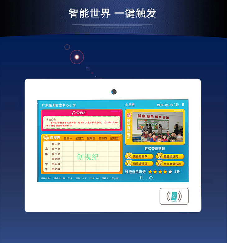 基礎數據庫系統是按照教育行業設計的標準數據庫,包括學校信息、教師信息、教室信息、學生信息、課程信息、班風班貌、德育評價、考試信息、考勤信息等,通過建設基礎數據庫系統可為教育信息化建設打造堅實基礎。產品備注:電容觸摸,可選擇帶刷卡功能或不帶刷卡功能,備貨尺寸:15.6寸、18.5寸、21 5寸,其他尺寸可訂做。
