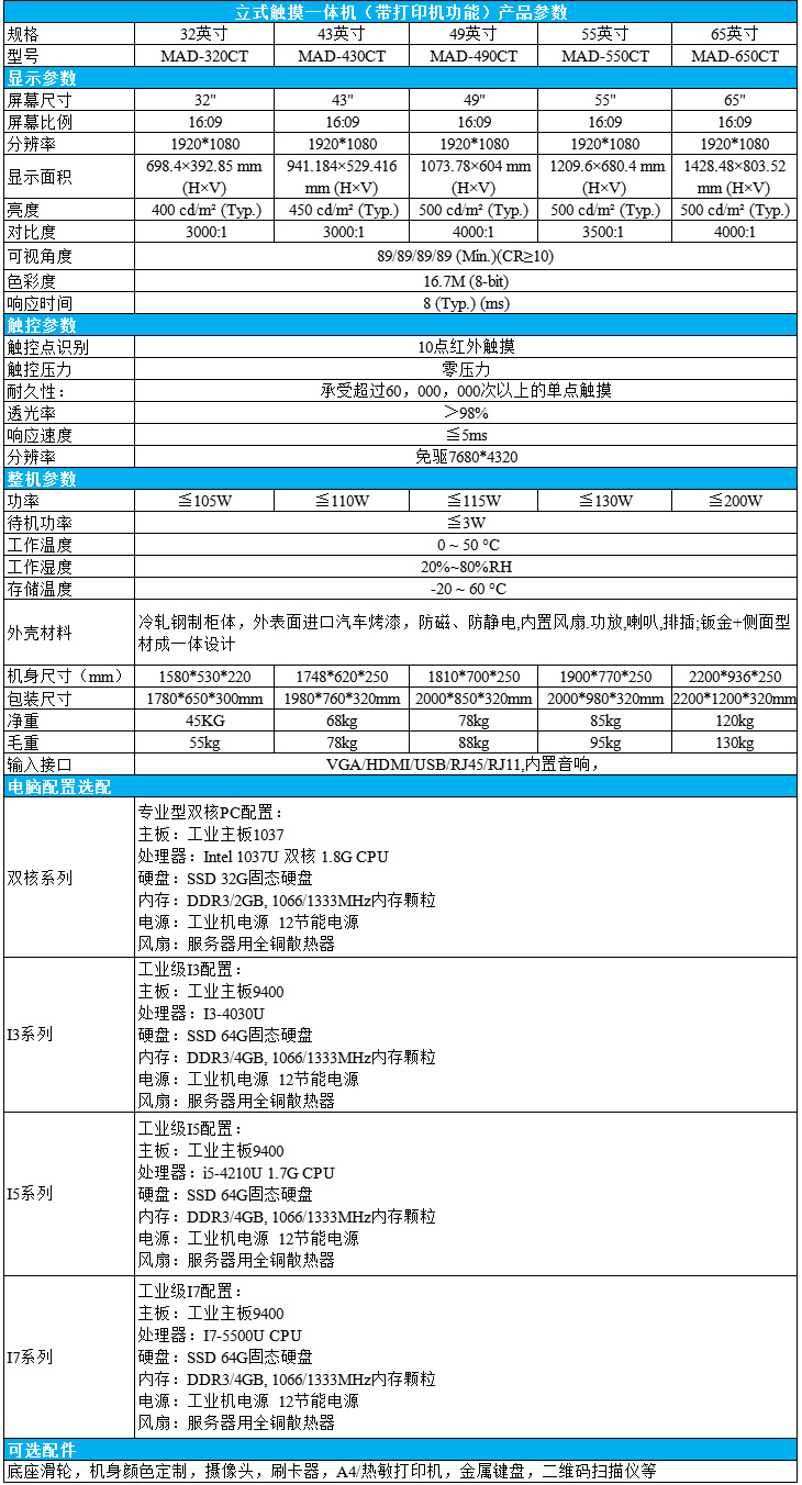 32/42/49/55/65英寸觸摸一體機A4打印一體機