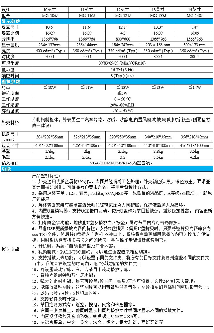 10/11/12/13/14英寸樓宇壁掛廣告機(jī)