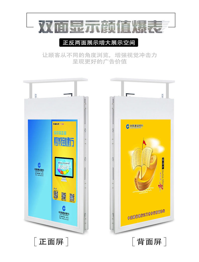 43寸建行櫥窗雙面屏吊裝廣告機