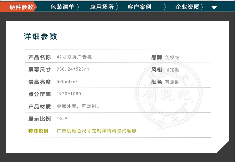 產品名稱:42寸立式雙屏廣告機 品牌: 創視紀