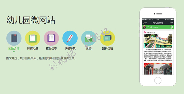 1.專業的美工和客服人員,將會整合幼兒園提供的原始素材制作精美的園所信息,有效全方位展示幼兒園點點滴滴