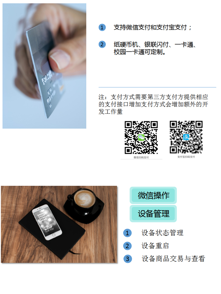 目前市場上已經(jīng)成熟推出,飲料自動售貨機,景區(qū)自助售取票機,咖啡飲料飲水一體機,盒飯自動販賣機,