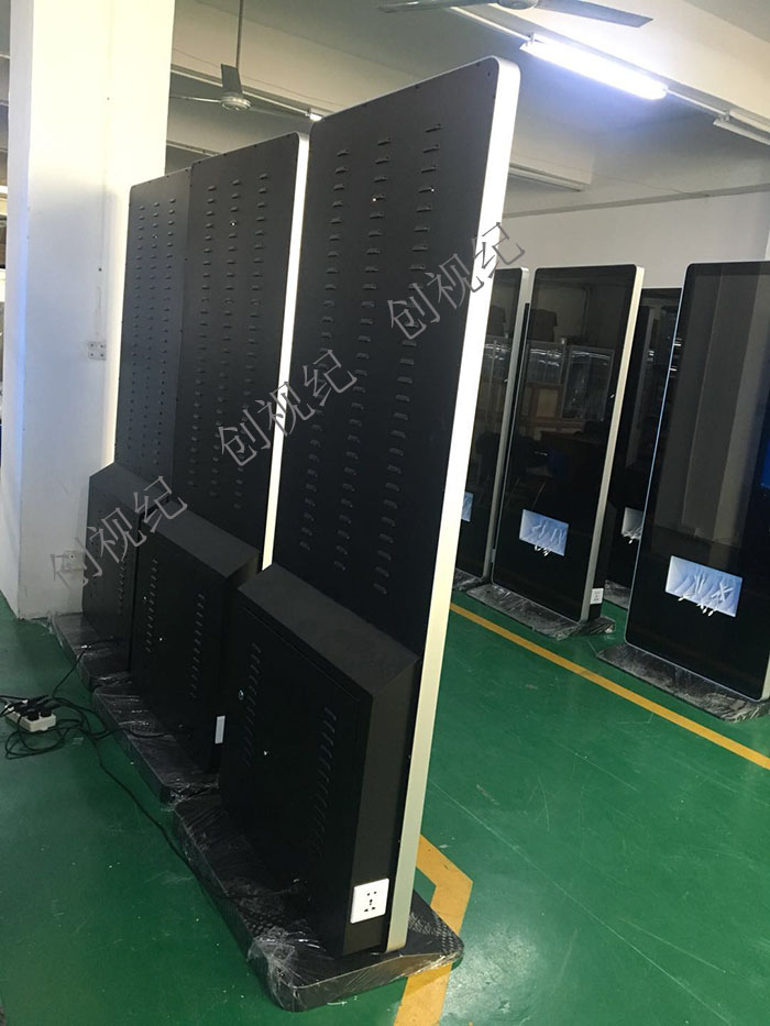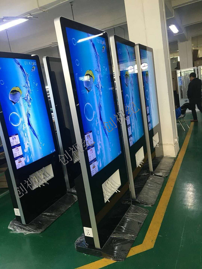 55寸落地款充電廣告機帶安卓系統,WIFI,軟件,每臺都有帶4個電源插頭,每邊2個,讓您在給手機補充能量的時候,欣賞我們創視紀廣告機帶來的完美視覺享受!