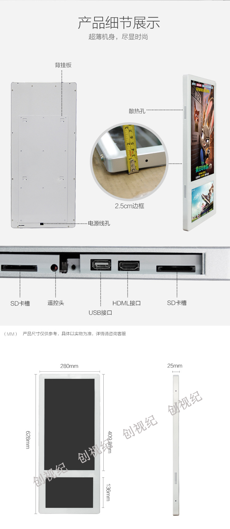 時(shí)下作為電梯傳播的媒介廣告機(jī),這些年也出過超薄系列,但是無論是古老的電梯框架,還是傳統(tǒng)的蘋果款,亦或是超薄單屏,都無法給消費(fèi)者,投資者帶來新穎的視覺沖擊的效果,新潮傳媒做了大膽嘗試,進(jìn)而選擇我們創(chuàng)視紀(jì)作為他們的供應(yīng)商之一,我們作為工廠的生產(chǎn)著也為之自豪,機(jī)器采用型材設(shè)計(jì),總厚度控制在2.5公分,18.5寸大屏加10.1寸小屏的結(jié)合,不僅可以讓投資者多一份收入,還能讓廣告商更多一份選擇。