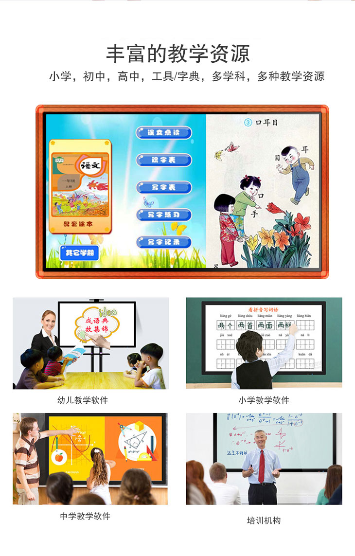 傳統黑板教學的方式過于單一,近年來隨著科技的迅速發展,現代化教學設備也逐漸走入中小學和大學課堂。它們的出現改變了傳統教學中粉筆加黑板的單一、呆板的表現形式,現推出創視紀教學一體機,廠家直銷,尺寸均可定制,高精準20點觸控技術;