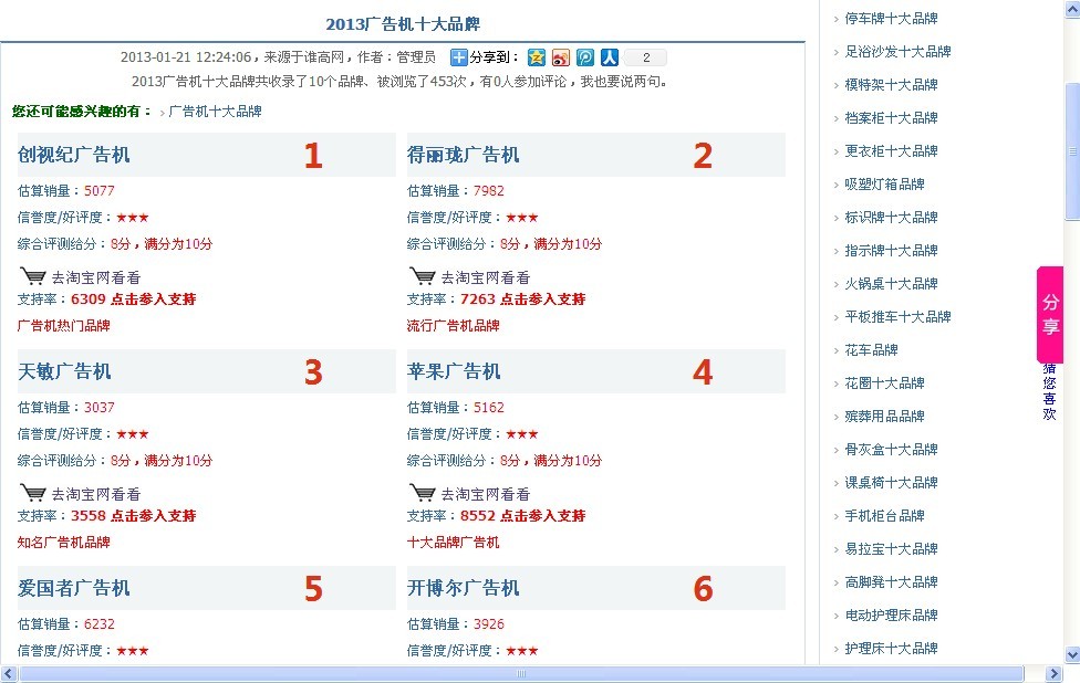 恭喜“創視紀”廣告機榮登2013年廣告機十大品牌之首,本活動數據由由百度提供。