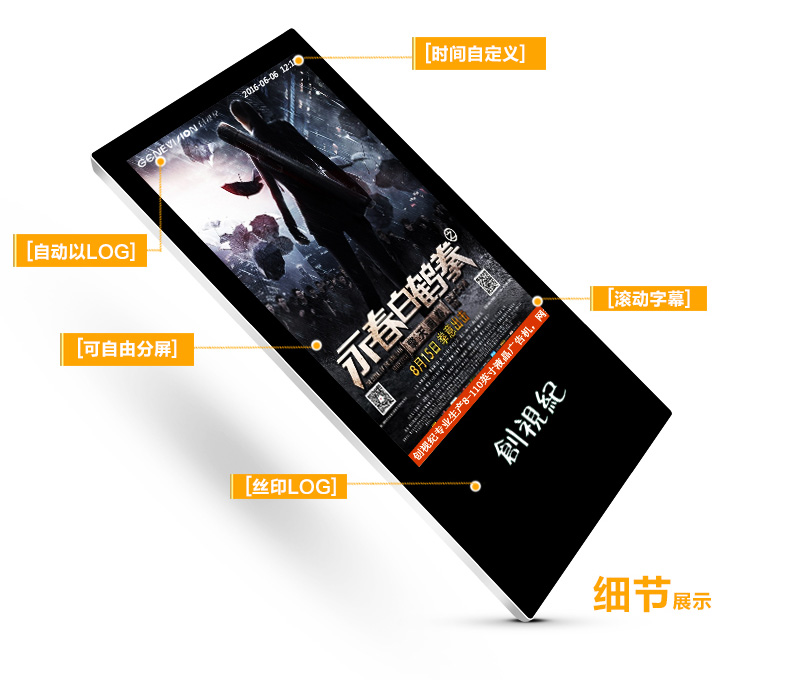 廣告機設計可以傳播多種媒體信息。如文字、聲音、圖像等信息,使得無知無趣抽像性的廣告變成更生動、人性化。并可以充分發揮傳媒公司的創造性和能動性。
